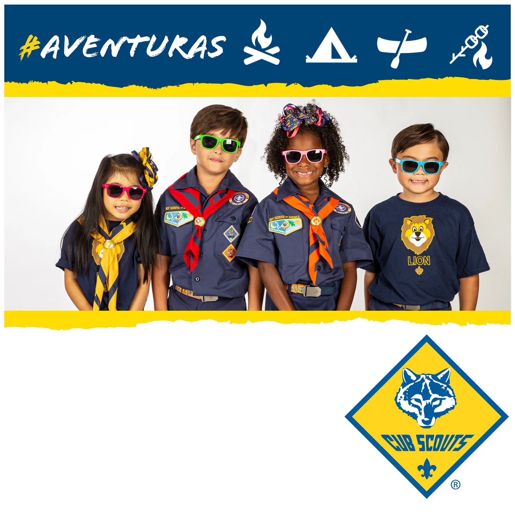 Cub Scouts promo para redes sociales o chats. Formato cuadrado.